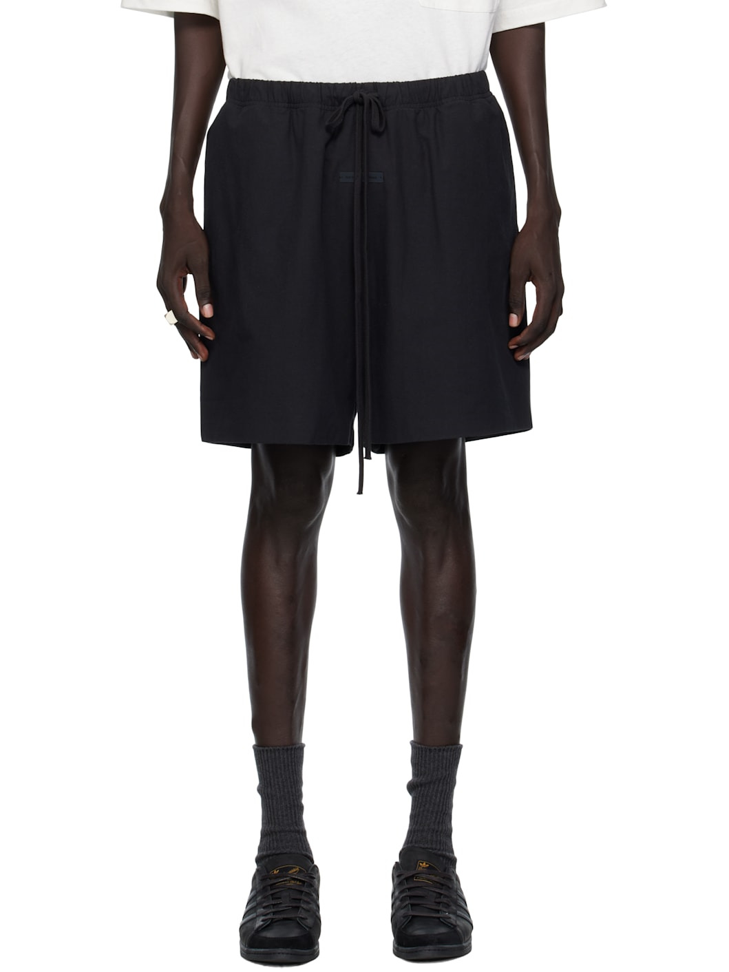 Padded cotton oxford cloth shorts. · Drawstring at elasticized waistband · Two-pocket styling · Rubber logo patch at front · Full mesh lining Supplier color: Jet black Body: 100% cotton. Fill: 100% polyester. Lining: 100% polyester. Made in Viet Nam 252161M193001