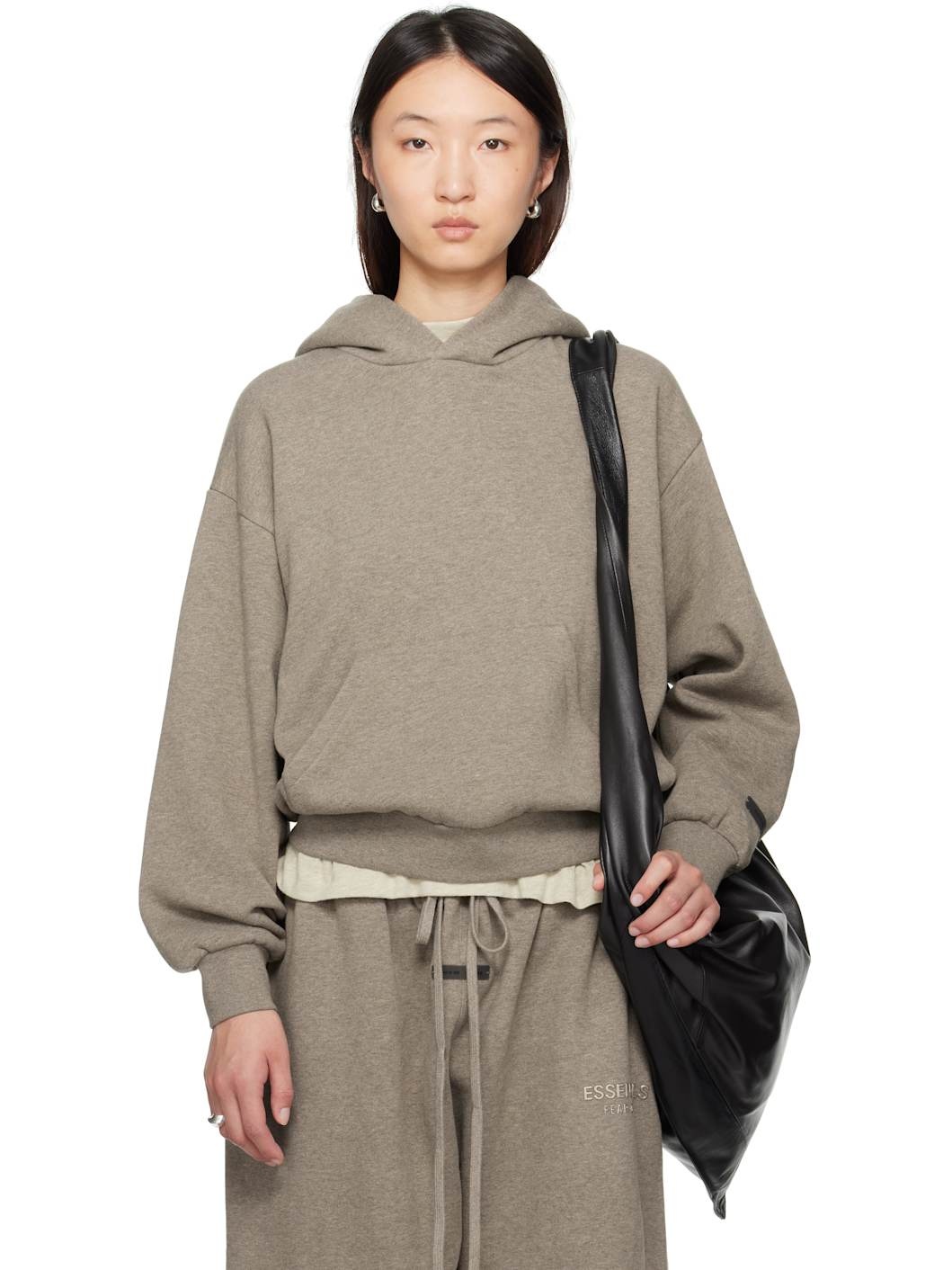 Cotton-blend fleece hoodie. · Rubberized logo patch at hood and cuff · Kangaroo pocket · Rib-knit hem and cuffs · Dropped shoulders · Reflective logo bonded at back Supplier color: Homestead heather 80% cotton, 20% polyester. Made in Viet Nam 252161F097026