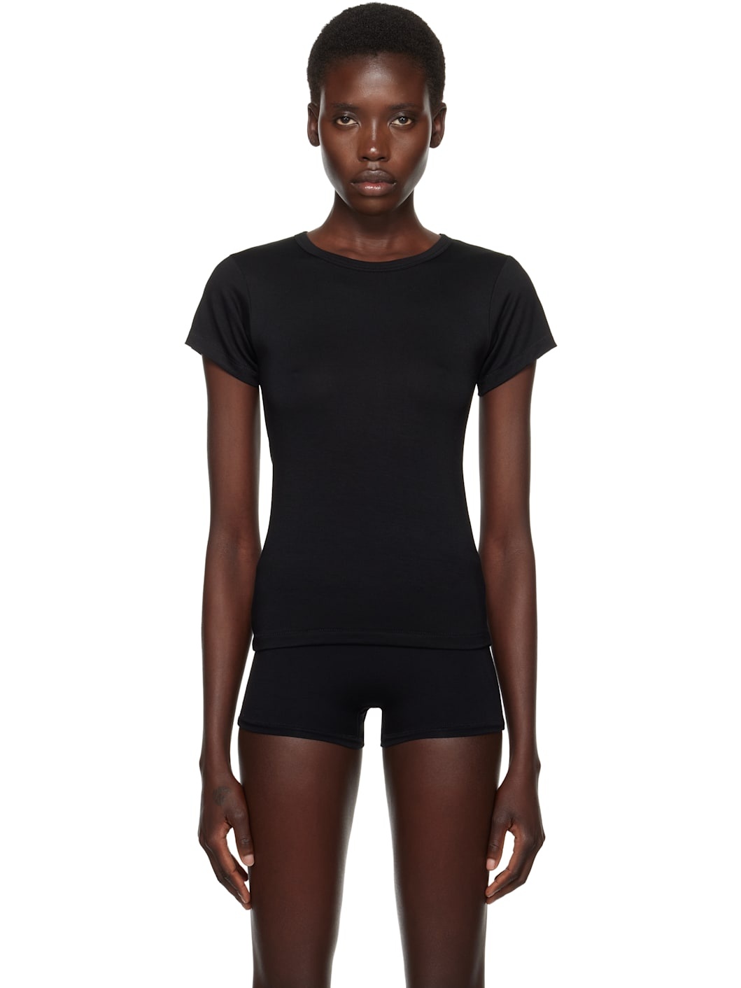 Black Fitted Crewneck Short Sleeve T-shirt