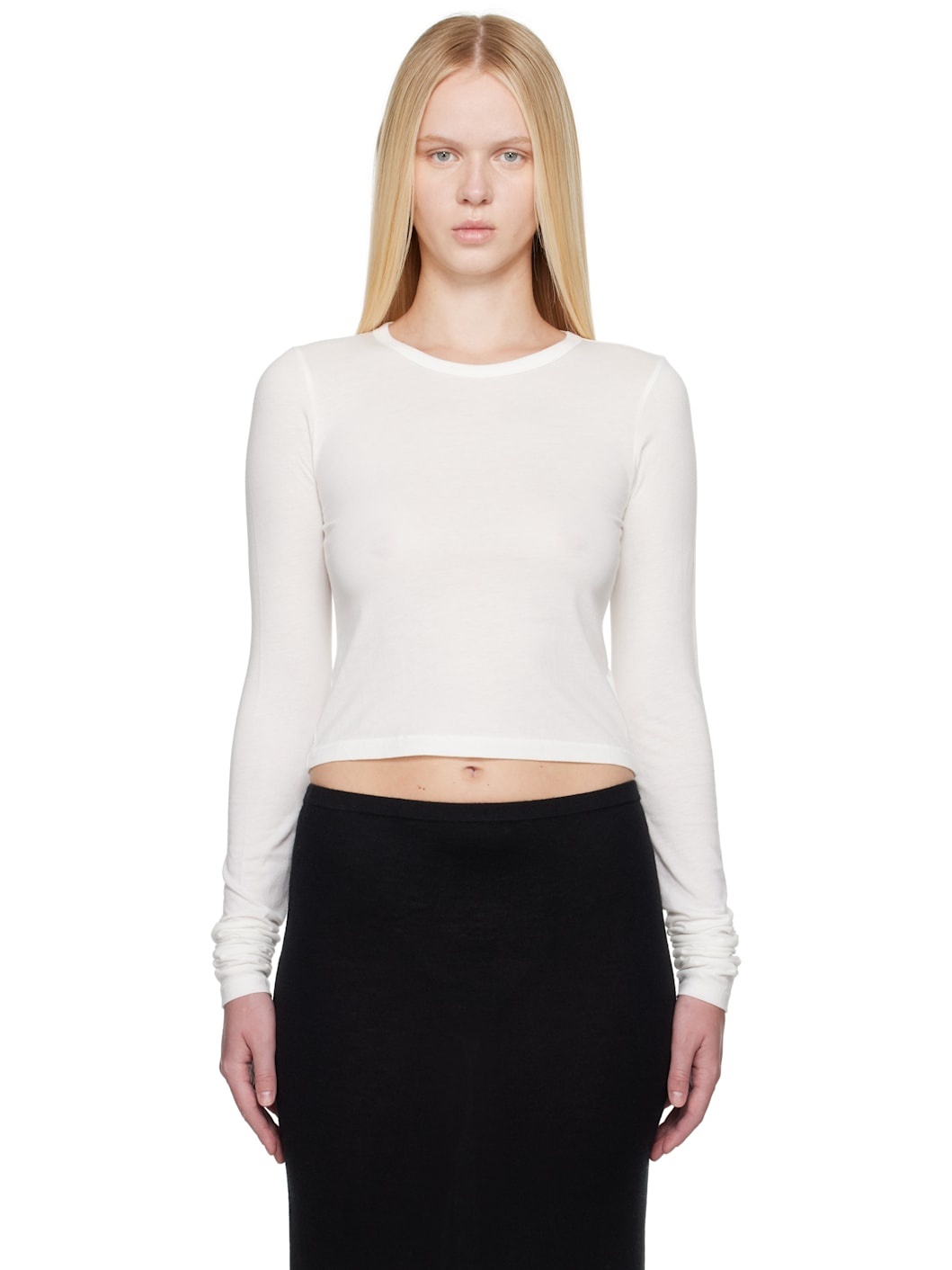 Cotton- and modal-blend jersey T-shirt. · Rib-knit crewneck · Cropped hem Supplier color: Ivory 50% cotton, 50% modal. Made in United States 251910F110007