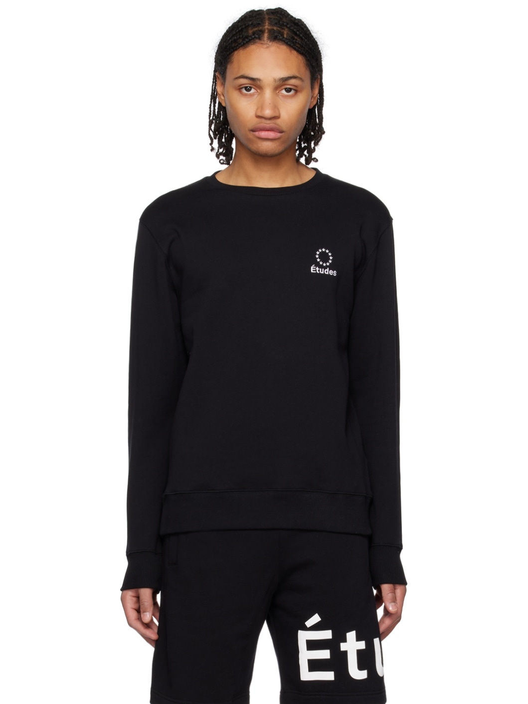 Organic cotton fleece sweatshirt. · Rib knit crewneck, hem, and cuffs · Logo embroidered at chest Supplier color: Black 100% organic cotton. Made in Portugal 231647M204002