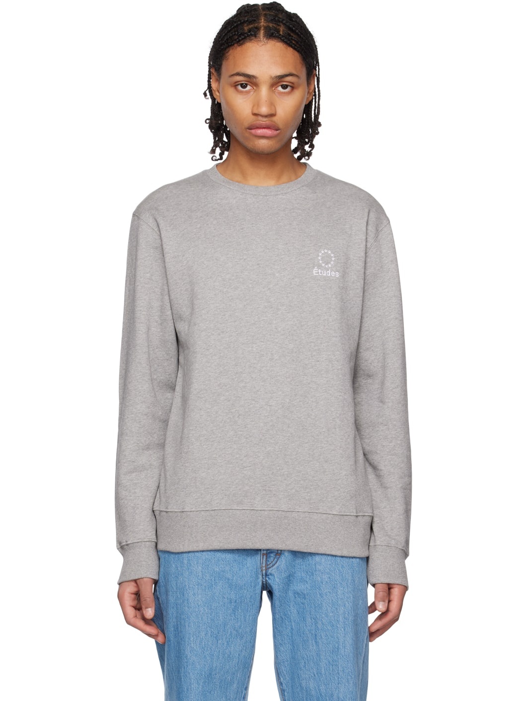 Organic cotton fleece sweatshirt. · Rib knit crewneck, hem, and cuffs · Logo embroidered at front Supplier color: Gray 100% organic cotton. Made in Portugal 231647M204003