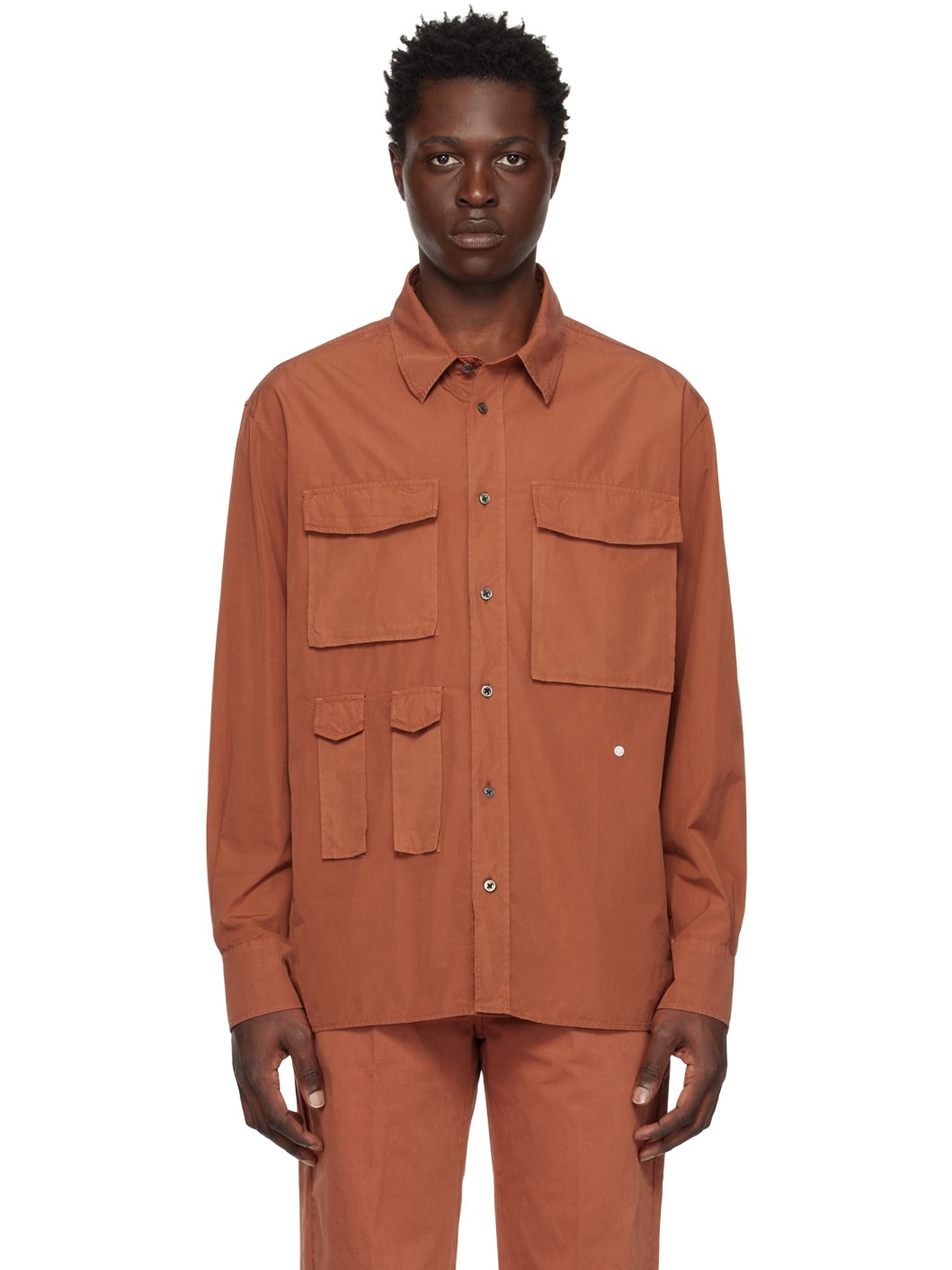 Cotton poplin shirt. · Spread collar · Button closure · Flap pockets · Logo hardware at front · Adjustable single-button barrel cuffs · Vented side seams · Mother-of pearl hardware Supplier color: Brown