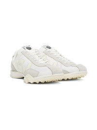 Low-top lightweight canvas, suede, and grained faux-leather sneakers in white, gray, and off-white. · Serrated edges throughout · Lace-up closure · Logo patch at padded tongue · Padded collar · Logo applique at sides · Logo embossed at heel tab · Grained faux-leather lining · EVA foam rubber midsole · Cleat-style rubber sole Supplier color: Suede off white Upper: leather, textile, synthetic. Sole: rubber. Made in Viet Nam 241640F128013