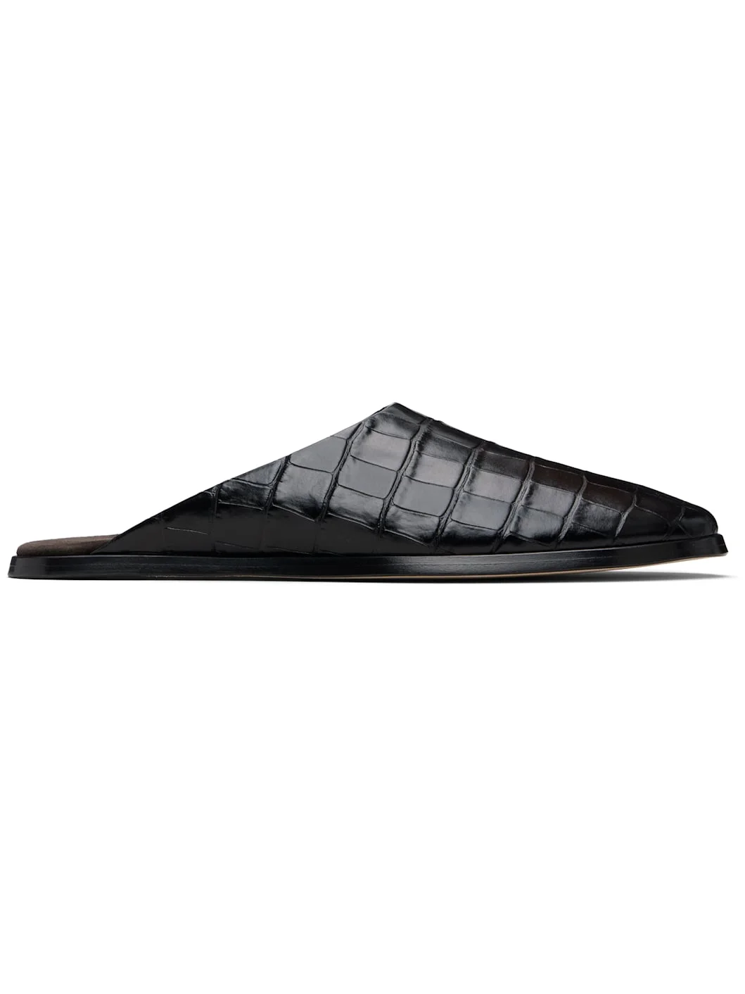 Croc-embossed leather slides. · Suede lining · Handcrafted stacked wood midsole · Leather sole with rubber injection Supplier color: Deep black Upper: leather. Sole: leather, rubber. Made in Italy 252782M231003