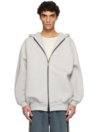 Cotton-blend fleece hoodie. · Leather logo patch at hood · Two-way zip closure · Seam pockets at waist · Rib-knit hem and cuffs · Dropped shoulders · Padded and quilted graphic at back · Patch pockets at interior Supplier color: Melange Grey Body: 69% cotton, 31% polyester. Pocket lining: 100% cotton. Trim: 94% cotton, 6% elastane. Made in Portugal 252782M202006