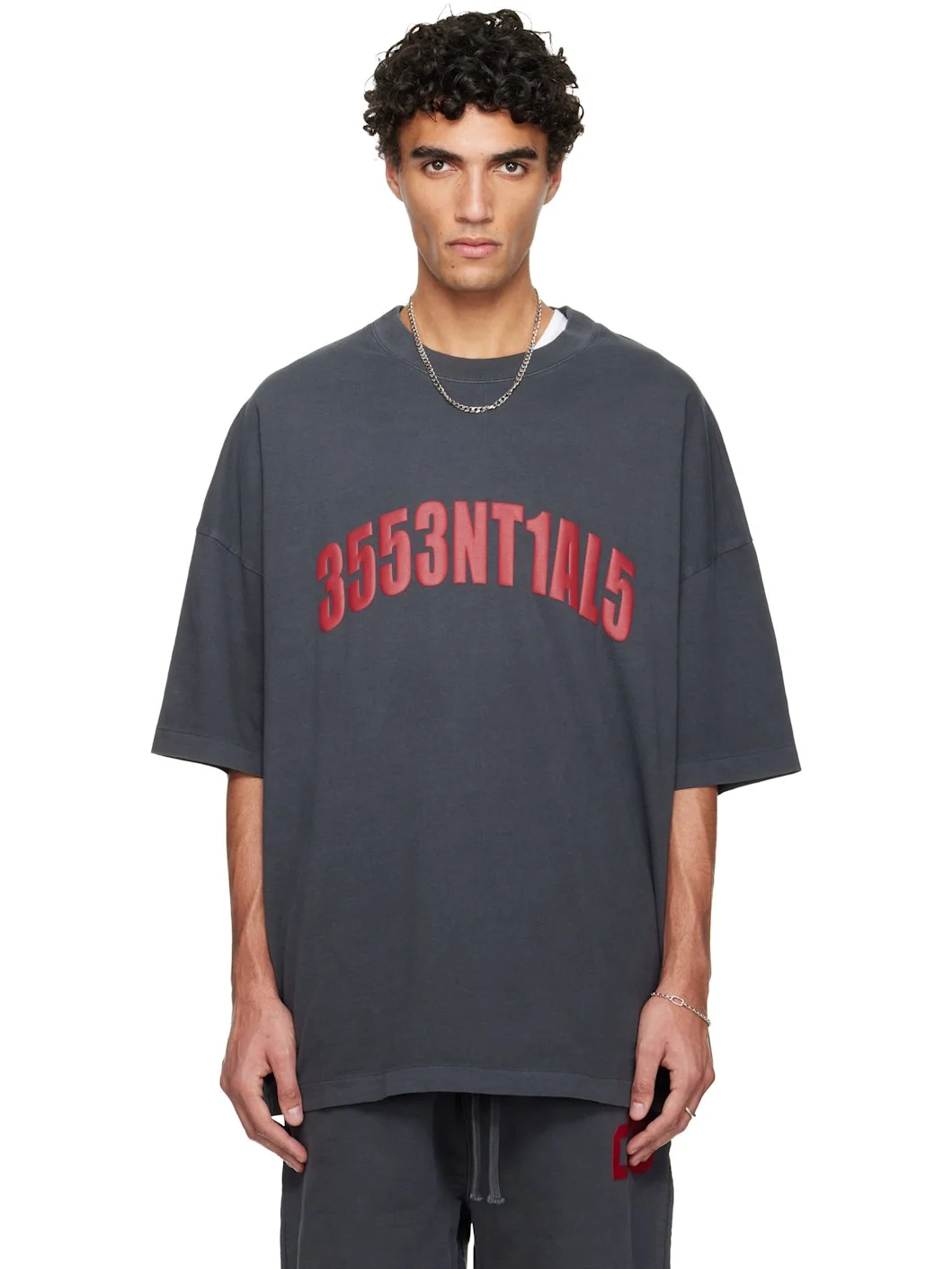 Cotton jersey T-shirt. · Fading throughout · Oversized · Rib-knit crewneck · Logo printed at front · Dropped shoulders · Rubber logo patch at back collar · Text printed at back Part of the Fear of God ESSENTIALS Holiday collection. Supplier color: Iron grey 100% cotton. Made in Viet Nam 261161M213019