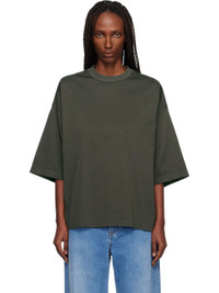 Cotton-blend jersey T-shirt. · Rib-knit crewneck · Dropped shoulders · Leather logo patch at back collar Supplier color: Khaki Body: 60% cotton, 40% viscose. Trim: 53% cotton, 47% viscose. Made in Portugal 252782F110008