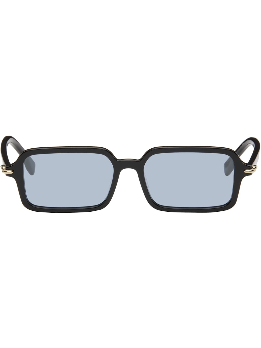 Rectangular acetate-frame sunglasses. · Blue lenses · 100% UVA/UVB protection, category 2 · Integrated nose pads · Studs and etched logo at temples · Includes pouch · Size: 54.16 140 Supplier color: Shiny black/Blue Acetate. Made in Italy 252693F005006