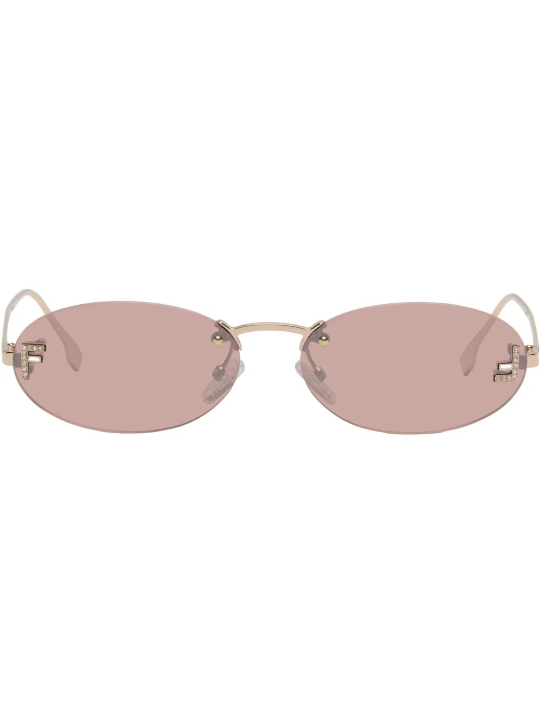 Oval rimless metal-frame sunglasses. · Pink lenses · 100% UVA/UVB protection, category 2 · Rivets and crystal-cut logo at face · Adjustable rubber nose pads · Logo engraved at temples · Includes pouch · Size: 54.15 135 Supplier color: Shiny rose gold Metal. Made in Italy 252693F005002