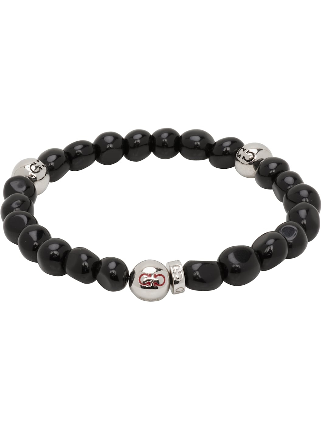 Elasticized beaded stone bracelet in black. · Logo-engraved silver-tone brass beads · D2.75" Supplier color: Black Stone, brass. Made in Italy 252270M142008