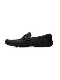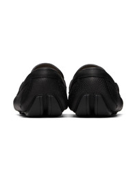 Handcrafted grained calfskin loafers in black. · Tubular construction · Square moc toe · Braided strap with logo hardware · Buffed leather lining · Treaded rubber sole · Logo-engraved hardware Supplier color: Black Upper: calfskin. Sole: rubber. Made in Italy 242270M231027