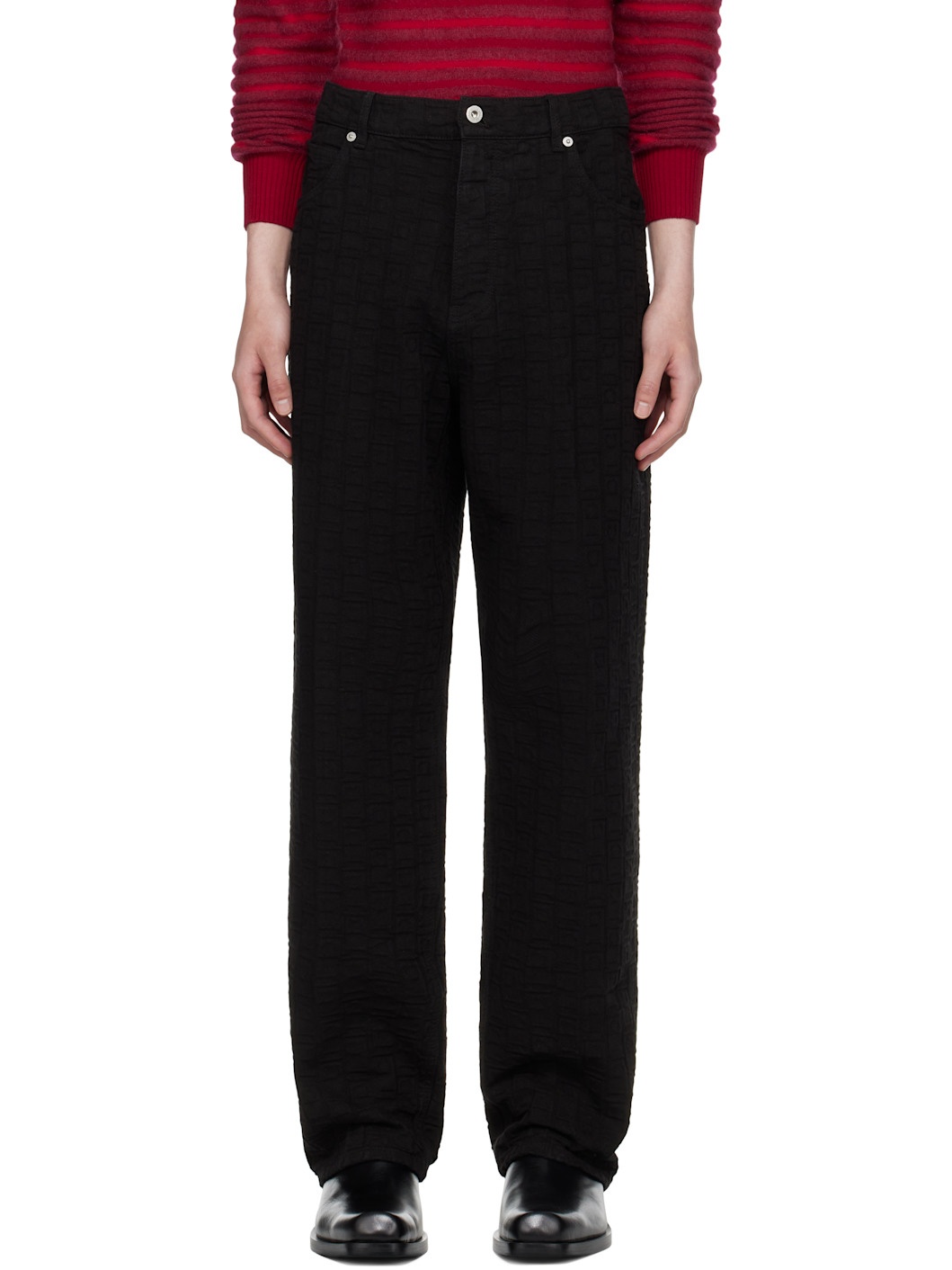 Non-stretch organic cotton denim jeans. Embossed jacquard logo pattern throughout. · Straight-leg · Belt loops · Five-pocket styling · Button fly · Creased legs · Leather logo patch at back waistband · Logo-engraved silver-tone hardware Supplier color: Black 100% organic cotton. Made in Italy 251270M186002