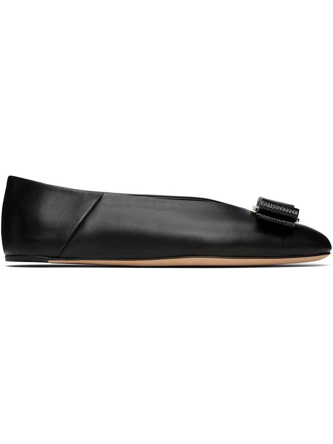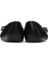 Buffed nappa lambskin ballerina flats in black. · Bow accent with logo plaque at vamp · Collapsible heel counter · Goatskin lining · Suede sole with rubber injection · Gold-tone hardware Supplier color: Black Upper: lambskin. Sole: leather, rubber. Made in Italy 251270F118004