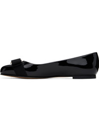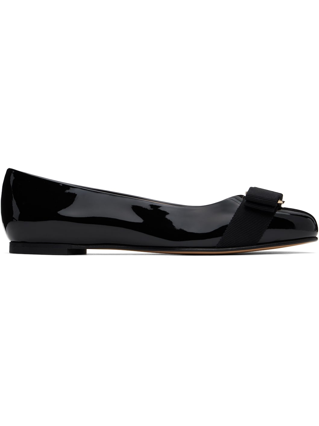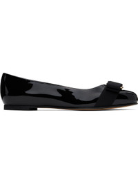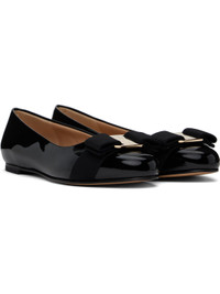 Patent calfskin ballerina flats in black. · Logo plaque and grosgrain bow at vamp · Suede and buffed leather lining · Leather sole with rubber injection · Logo-engraved gold-tone hardware Supplier color: Black Upper: calfskin. Sole: leather, rubber. Made in Italy 251270F118009