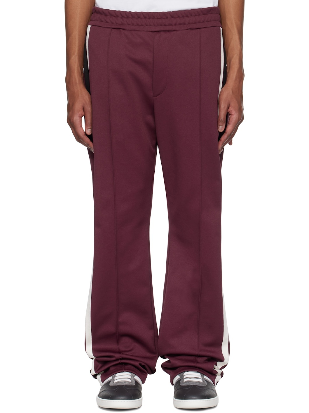 Recycled polyester- and cotton-blend jersey sweatpants. · Concealed drawstring at elasticized waistband · Four-pocket styling · Zip-fly · Pinched seams at front · Stripes at outseams · Logo embroidered at back pocket Supplier color: Oxblood/Nero Body: 54% recycled polyester, 46% cotton. Trim: 60% viscose, 40% polyester. Made in Italy 251270M190000