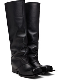 Knee-high buffed leather tall boots. · Square toe · Leather overlay panel at collar · Concealed zip closure at inner side · Buffed leather lining · Buffed leather sole · Stacked leather block heel · Heel: H2.5" Supplier color: Black Leather. Made in Italy 252953F115002