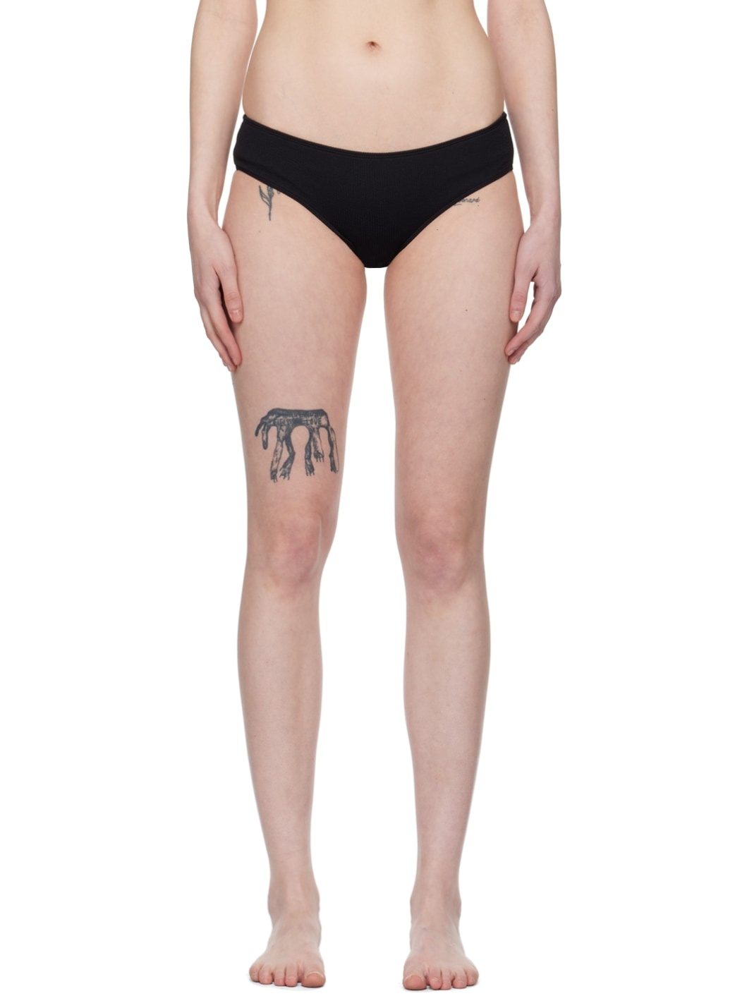 Stretch recycled polyester ribbed jersey bikini bottom. · Low-rise · Full stretch jersey lining Supplier color: Black Body: 94% recycled polyester, 6% elastane. Lining: 73% polyamide, 27% elastane. Made in Portugal 241072F105001
