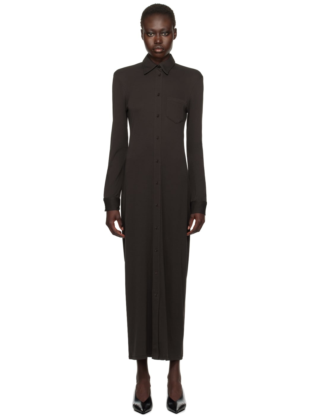 Slim-fit TENCEL™ lyocell-blend jersey maxi dress. · Spread collar · Button closure · Patch pocket · Single-button barrel cuffs · Unlined Supplier color: Dark chocolate 69% lycocell, 31% polyamide. Made in Portugal 242072F054006