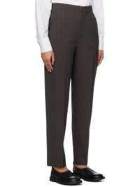 Tapered stretch wool delaine trousers. · Low-rise · Four-pocket styling · Zip-fly · Creased legs · Cinch strap at back waist Supplier color: Dark oak melange 96% wool, 4% elastane. Made in Portugal 241072F087007
