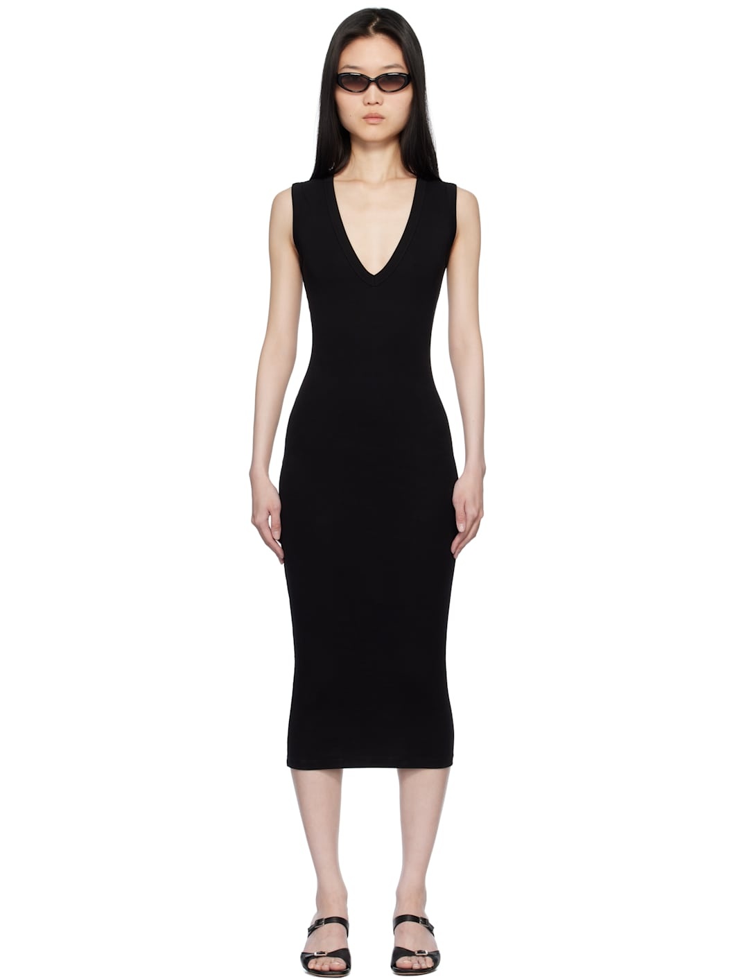 Heavyweight organic cotton jersey midi dress. · Rib-knit plunging V-neck and armscyes · Central seam at back Supplier color: Black 100% organic cotton. Made in Portugal 251924F054001