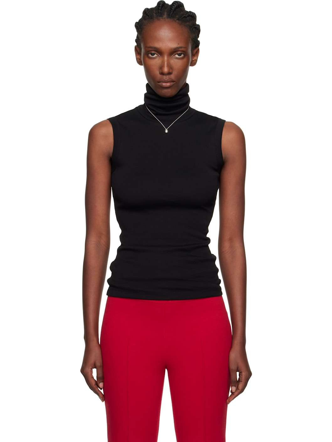 Lightweight rib-knit organic cotton tank top. Turtleneck. Supplier color: Black 100% organic cotton. Made in Portugal 252924F111063