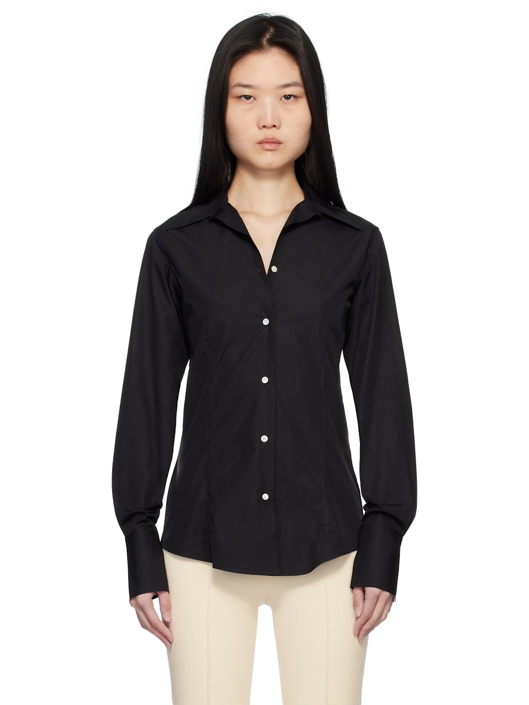 Slim-fit heavyweight organic cotton poplin shirt. · Spread collar · Button closure · Darts at front and back · Shirttail hem · Pleated single-button barrel cuffs · Mother-of-pearl hardware Supplier color: Black 100% organic cotton. Made in Portugal 251924F109004