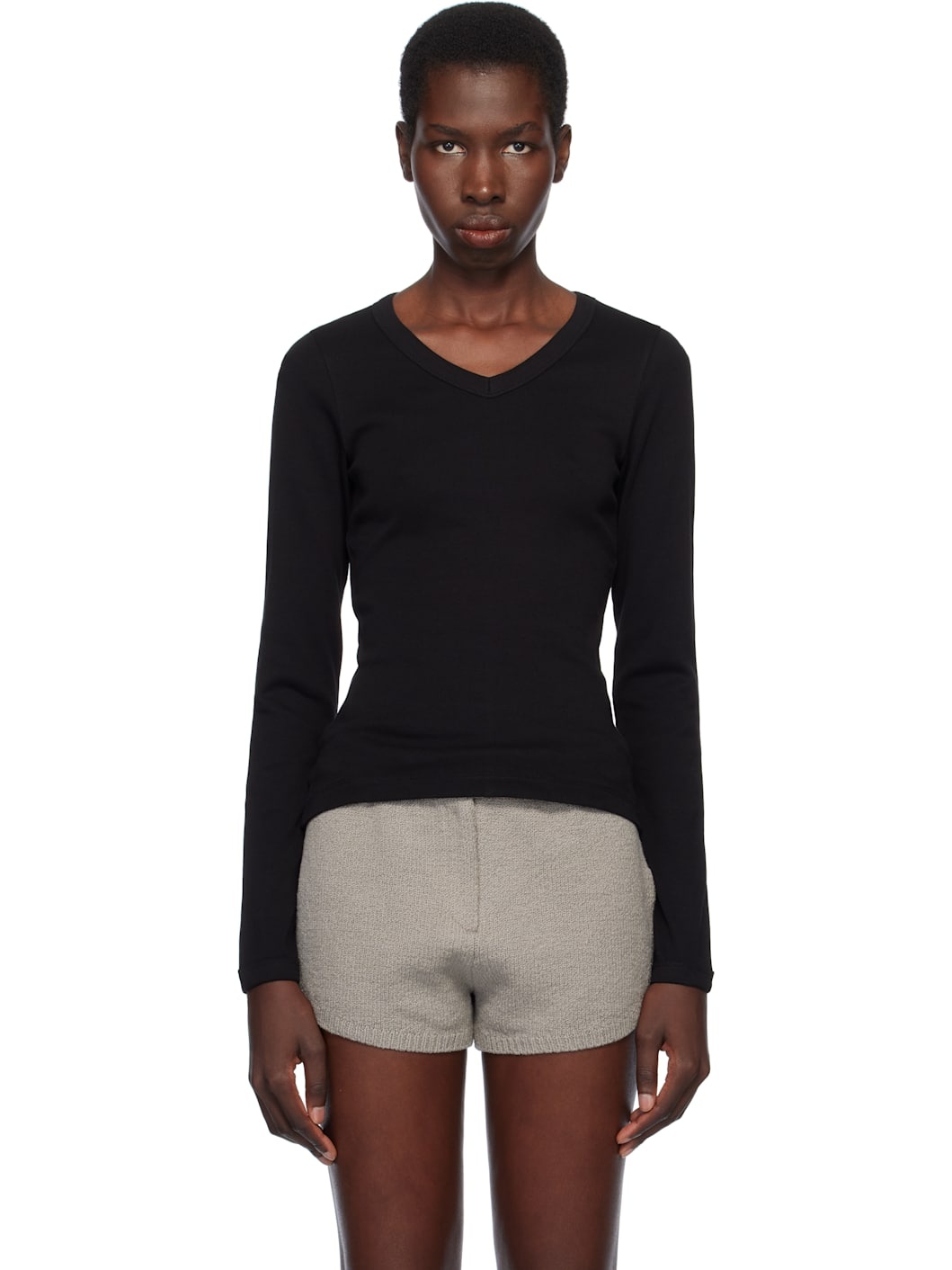 Organic cotton jersey T-shirt. · Rib-knit V-neck and cuffs · Central seam at back Supplier color: Black 100% organic cotton. Made in Portugal 252924F110019