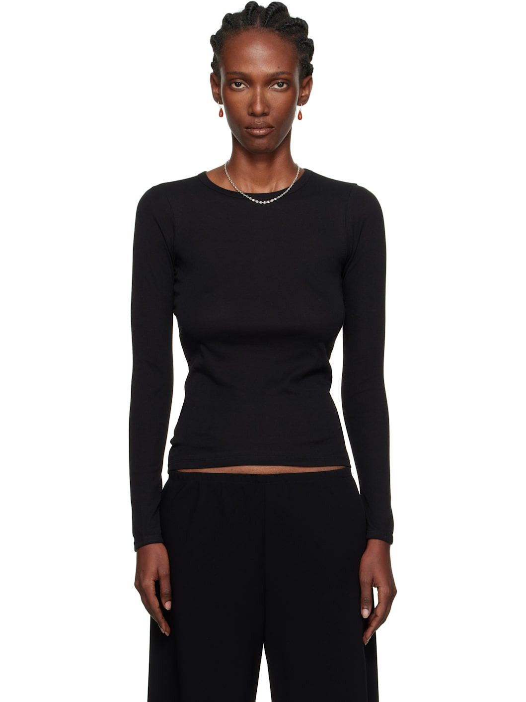 Lightweight rib-knit organic cotton T-shirt. Crewneck. Supplier color: Black 100% organic cotton. Made in Portugal 252924F110050