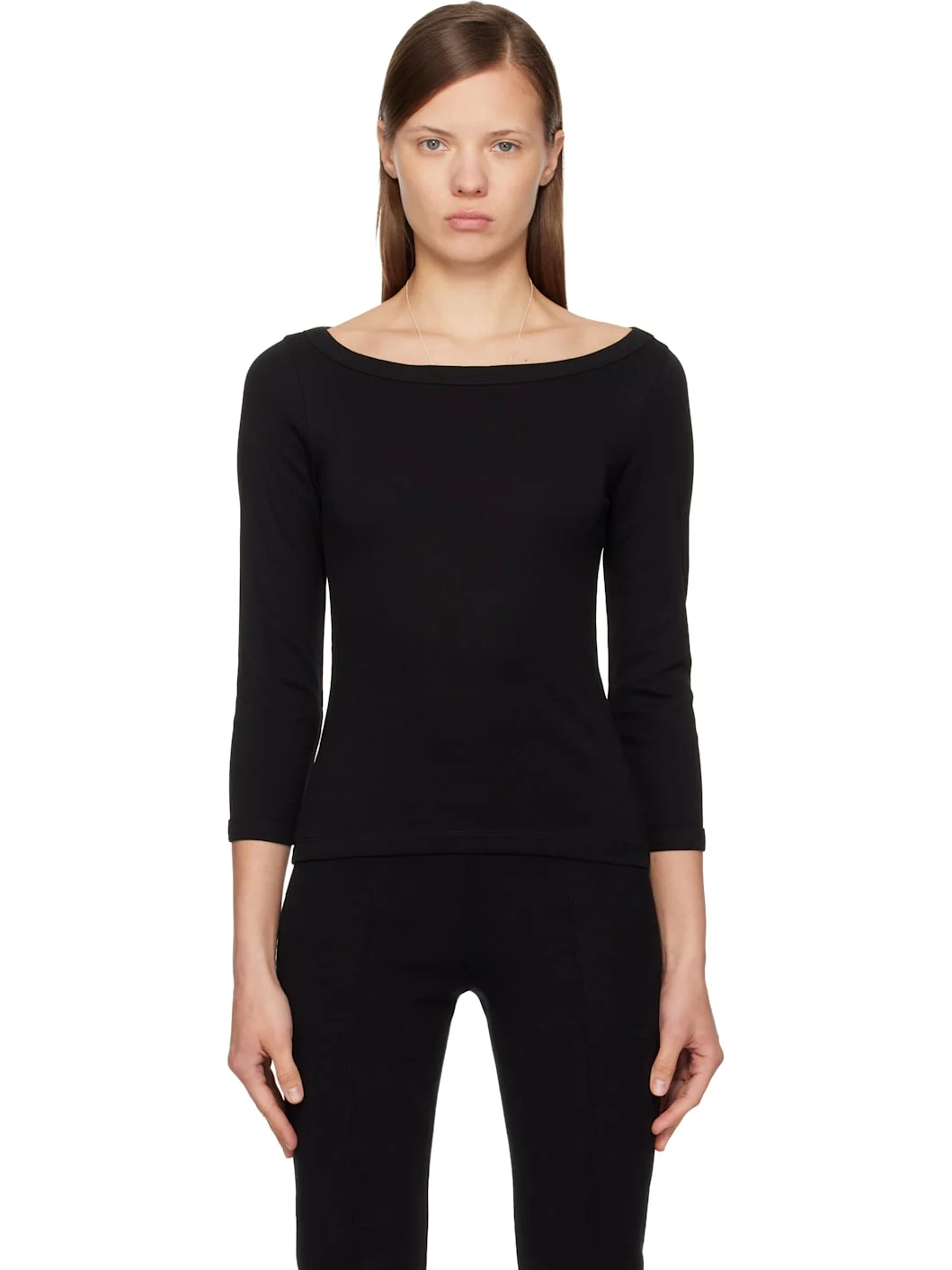 Organic cotton jersey T-shirt. · Rib-knit boatneck and cuffs · Three-quarter sleeves · Central seam at back Supplier color: Black 100% organic cotton. Made in Portugal 261924F110005