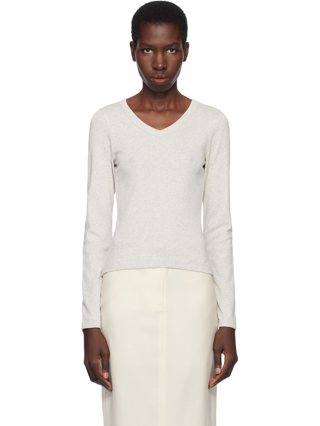 Organic cotton jersey T-shirt. · Rib-knit V-neck and cuffs · Central seam at back Supplier color: Heather grey 100% organic cotton. Made in Portugal 252924F110017