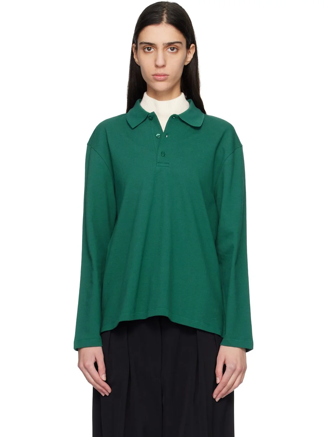 Organic cotton pique polo. · Rib-knit spread collar · Three-button placket · Tennis-tail hem · Dropped shoulders · Mother-of-pearl hardware Supplier color: Evergreen 100% organic cotton. Made in Portugal 261924F108013