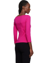 Organic cotton jersey T-shirt. · Rib-knit boatneck and cuffs · Three-quarter sleeves · Central seam at back Supplier color: Fuchsia 100% organic cotton. Made in Portugal 261924F110006