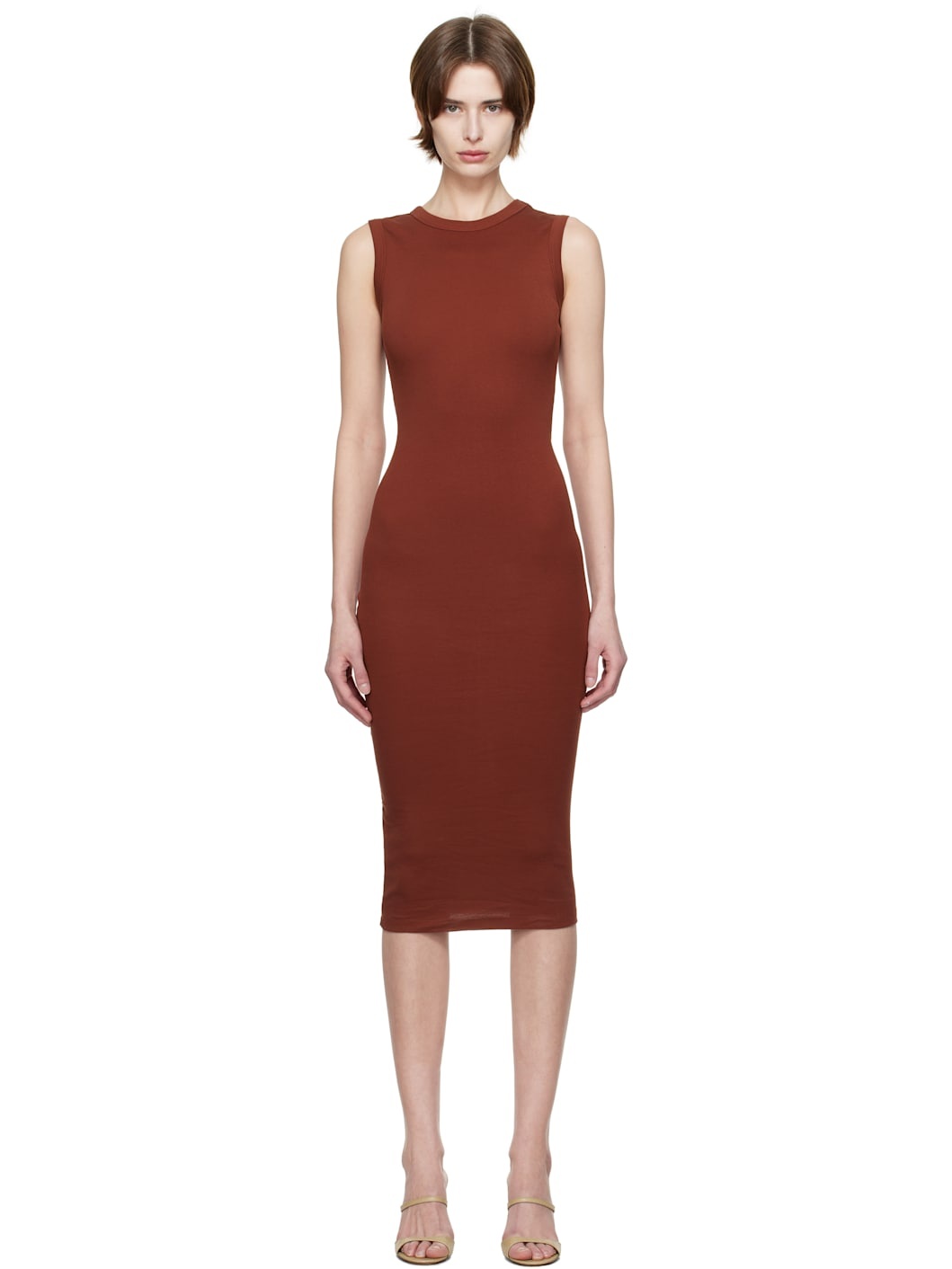 Heavyweight organic cotton ribbed jersey midi dress. · Rib-knit crewneck and armscyes · Central seam at back Supplier color: Syrah 100% organic cotton. Made in Portugal 251924F054005