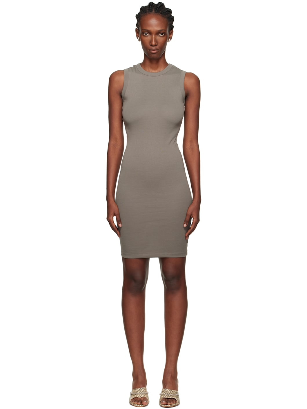 Rib-knit organic cotton midi dress. · Crewneck · Central seam at back Supplier color: Mushroom 100% organic cotton. Made in Portugal 252924F052003
