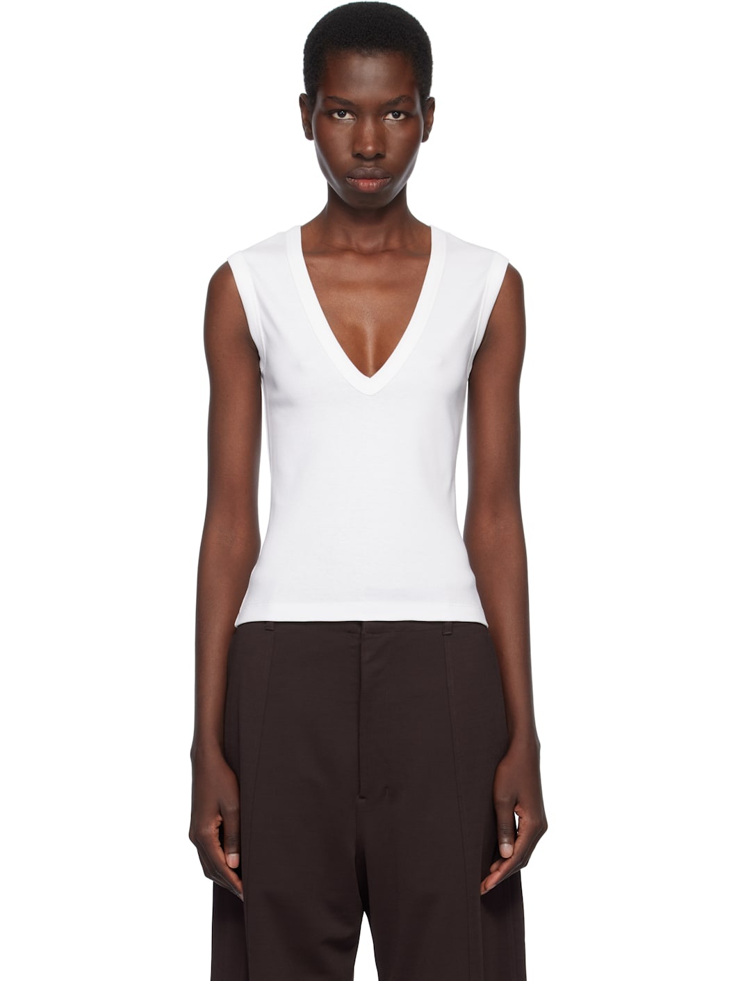 Organic cotton jersey tank top. · Rib-knit plunging V-neck and armscyes · Central seam at back Supplier color: White 100% organic cotton. Made in Portugal 252924F111040