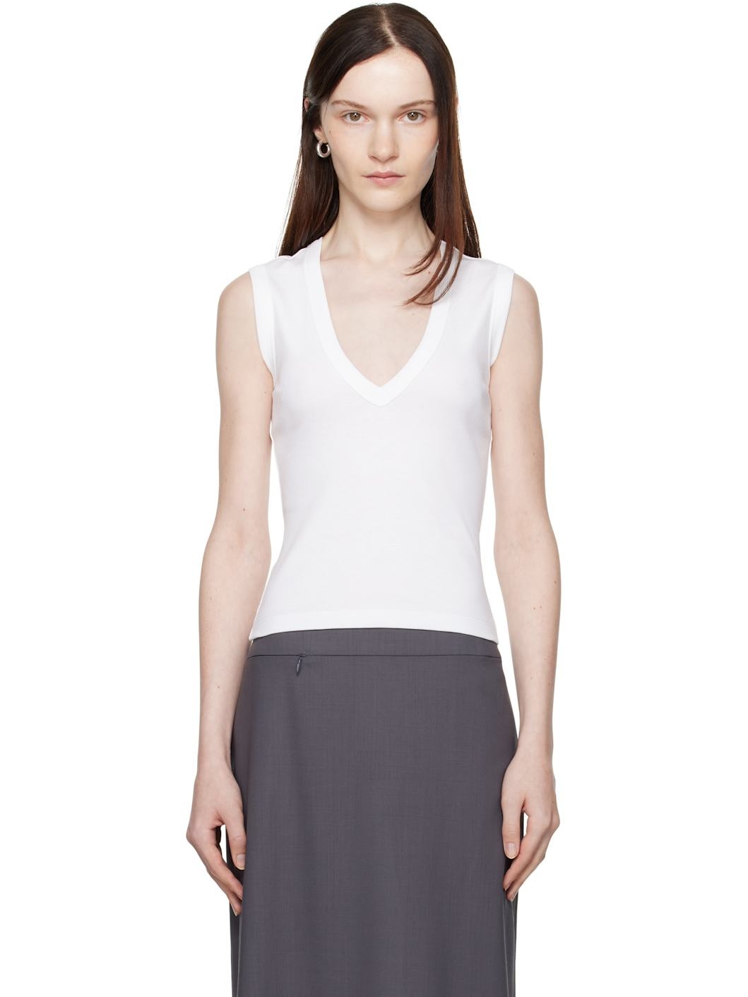 Organic cotton jersey tank top. · Rib-knit plunging V-neck and armscyes · Central seam at back Supplier color: White 100% organic cotton. Made in Portugal 251924F111023