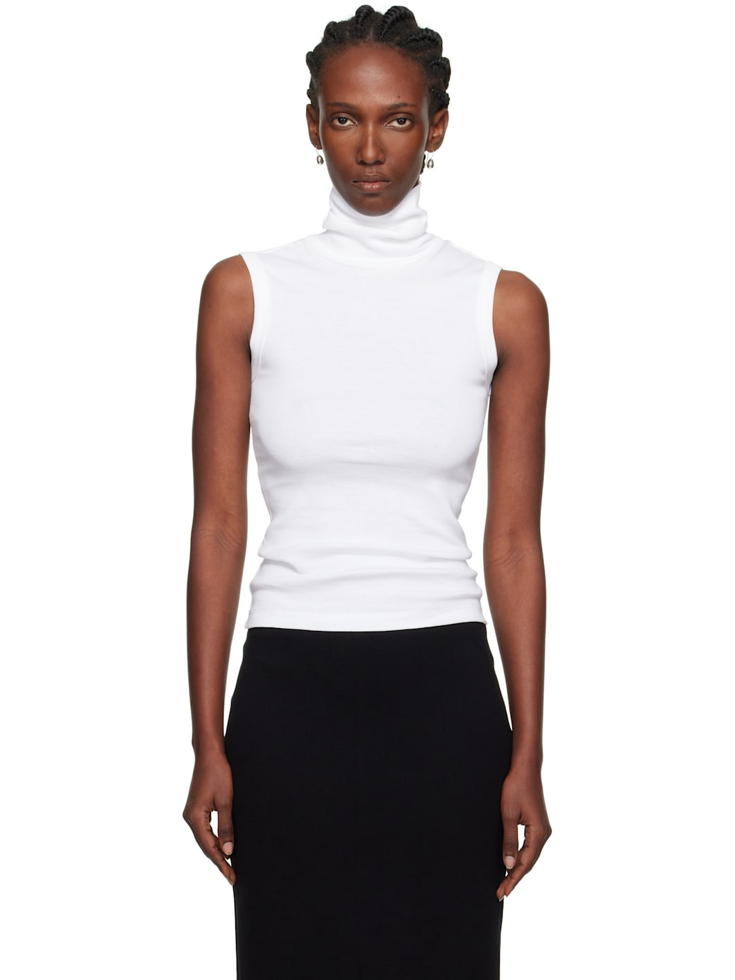 Rib-knit organic cotton tank top. Turtleneck. Supplier color: White 100% organic cotton. Made in Portugal 252924F111064