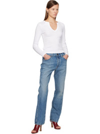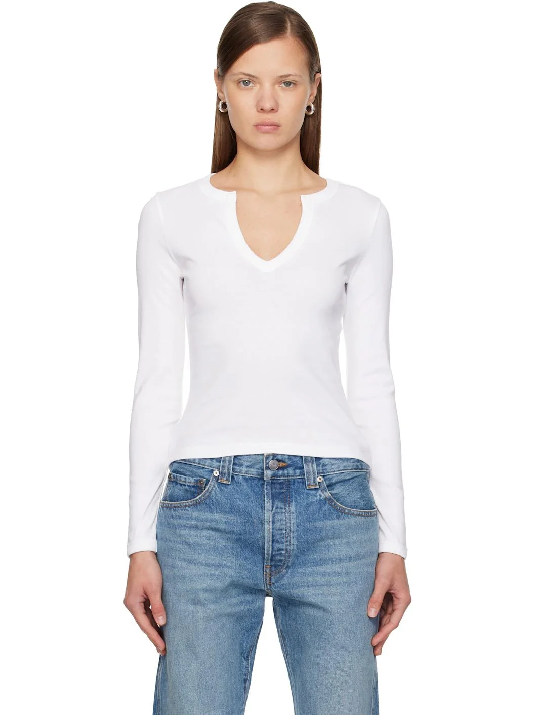 Organic cotton jersey T-shirt. · Rib-knit modified V-neck and cuffs · Central seam at back Supplier color: White 100% organic cotton. Made in Portugal 261924F110049