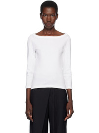 Organic cotton jersey T-shirt. · Rib-knit boatneck and cuffs · Three-quarter sleeves · Central seam at back Supplier color: White 100% organic cotton. Made in Portugal 252924F110006
