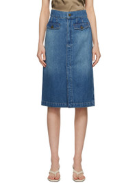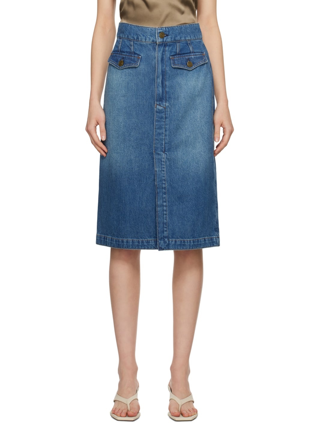 Non-stretch denim skirt. Fading throughout. · Darting at front and back waistband · Four-pocket styling · Zip-fly · Central vent at front hem · Logo-engraved antiqued gold-tone hardware · Contrast stitching in tan Supplier color: Pearl district 100% cotton. Made in Turkey 241455F092002