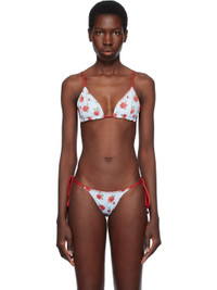 Stretch nylon jersey bikini top. Floral pattern printed throughout. · Blanket stitching at single triangle · Adjustable shoulder straps · Self-tie straps at back · Fully lined Supplier color: Rosewater print 80% nylon, 20% spandex. Made in Colombia 251090F105021