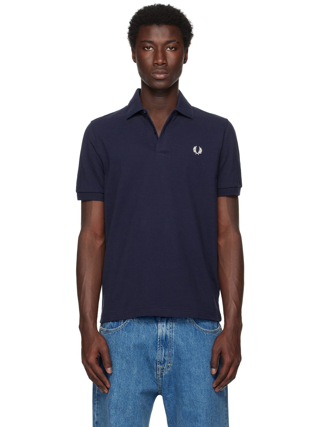 Cotton pique polo. · Rib-knit spread collar and cuffs · Two-button placket · Logo embroidered at chest Supplier color: Navy/Ice 100% cotton. Made in United Kingdom 252719M212001
