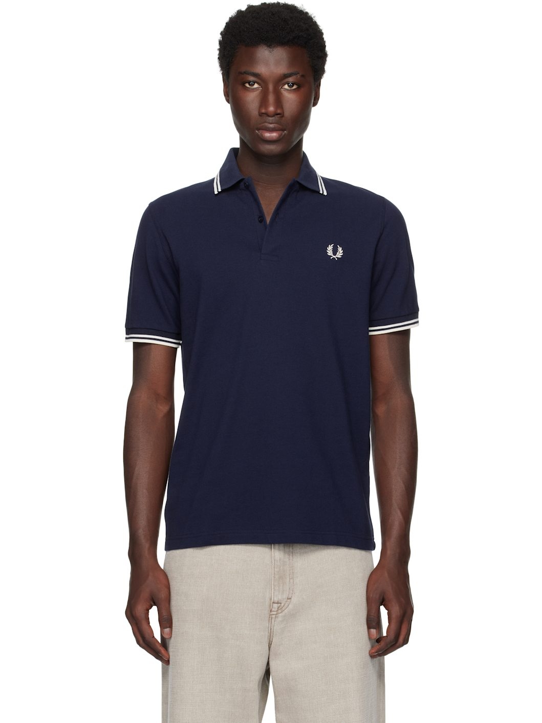 Cotton pique polo. · Striped rib-knit spread collar and cuffs · Two-button placket · Logo embroidered at chest Supplier color: Dark Carbon/Ecru/Ecru 100% cotton. Made in United Kingdom 252719M212003