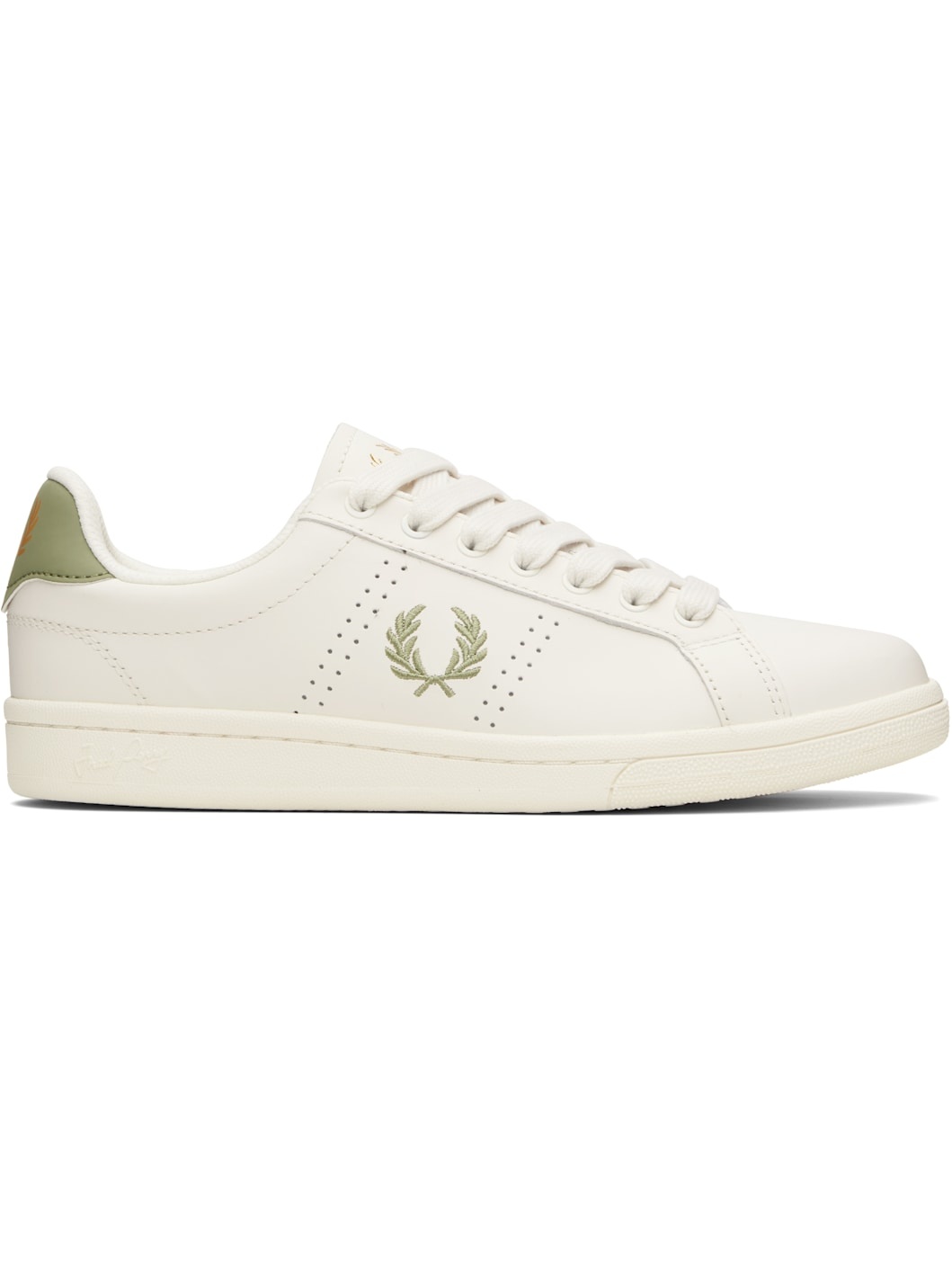 Low-top buffed leather sneakers. · Lace-up closure · Logo printed at padded tongue and heel tab · Padded collar · Perforations at sides · Logo embroidered at outer side · Mesh lining · Treaded rubber sole Supplier color: Light ecru Upper: leather. Sole: rubber. Made in Viet Nam 252719M237001
