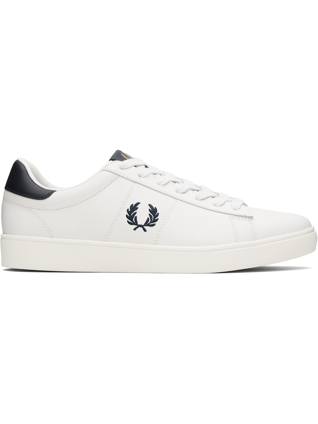 Low-top buffed leather sneakers. · Lace-up closure · Logo patch at tongue · Padded collar · Logo embroidered at outer side · Mesh lining · Treaded rubber sole Supplier color: Porcelain Upper: leather. Sole: rubber. Made in Viet Nam 252719M237003