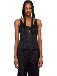 Silk- and linen-blend twill camisole. · Pin-buckle tab at scoop neck · Keyhole at chest · Boning at bodice · Zip closure at back Supplier color: Black Body: 72% silk, 28% linen. Lining: 100% silk. Made in Italy 241854F111003
