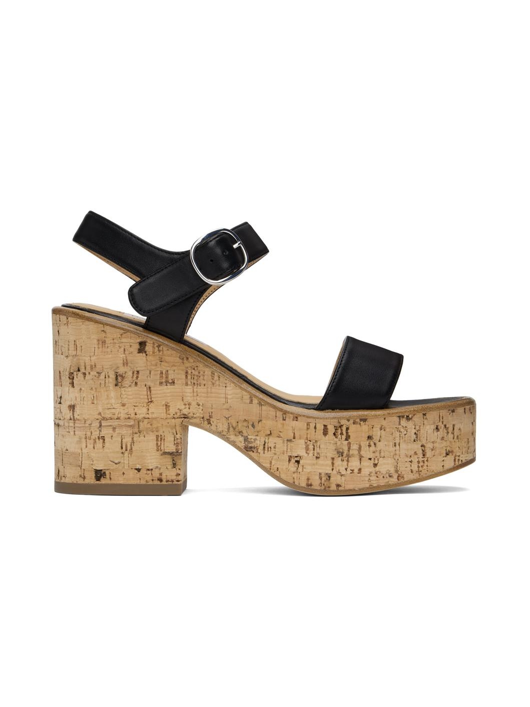 Buffed nappa calfskin heeled sandals in black. · Open toe · Pin-buckle ankle strap · Logo patch at padded footbed · Cork platform midsole · Cork block heel · Leather sole with rubber injection · Platform: H1.75" · Heel: H4.25" Supplier color: Black Calfskin. Made in Spain 242854F125001
