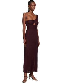 Rib-knit silk maxi dress. · Semi-sheer · Single-shoulder construction · Cutout and knotted accent at chest · Concealed zip closure at side seam Supplier color: Bordeaux 100% silk. Made in Italy 252854F055001