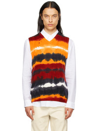 Knit cashmere vest. · Tie-dyed pattern throughout · Rib knit V-neck, hem and armscyes Each item is unique. Please note that coloration may vary. Supplier color: Fire tie dye 100% cashmere. Made in Italy 232854M206000